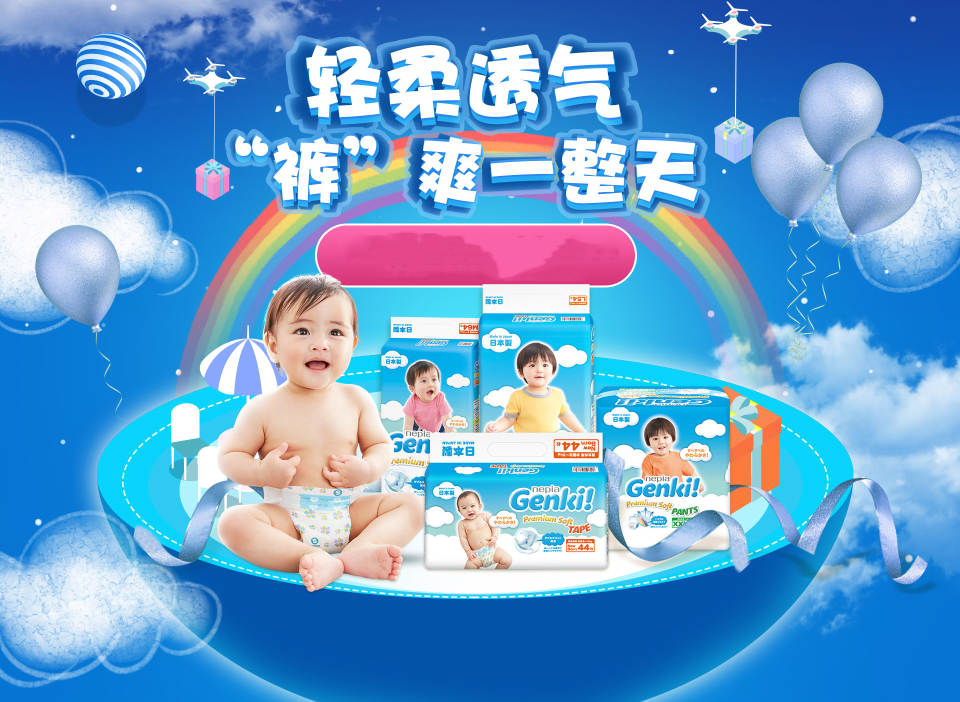 安兒樂(lè)(Anerle)彩箱裝薄薄小輕芯嬰兒紙尿褲 中號(hào) M號(hào) 92片
